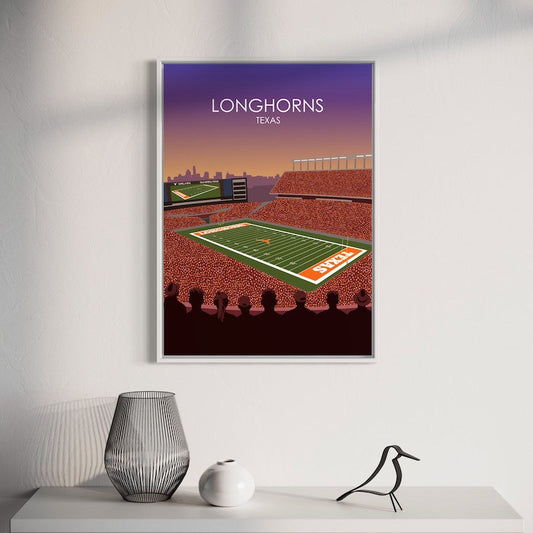 Darrell K Royal Memorial Stadium Poster | University of Texas Longhorns College Football Stadium Print